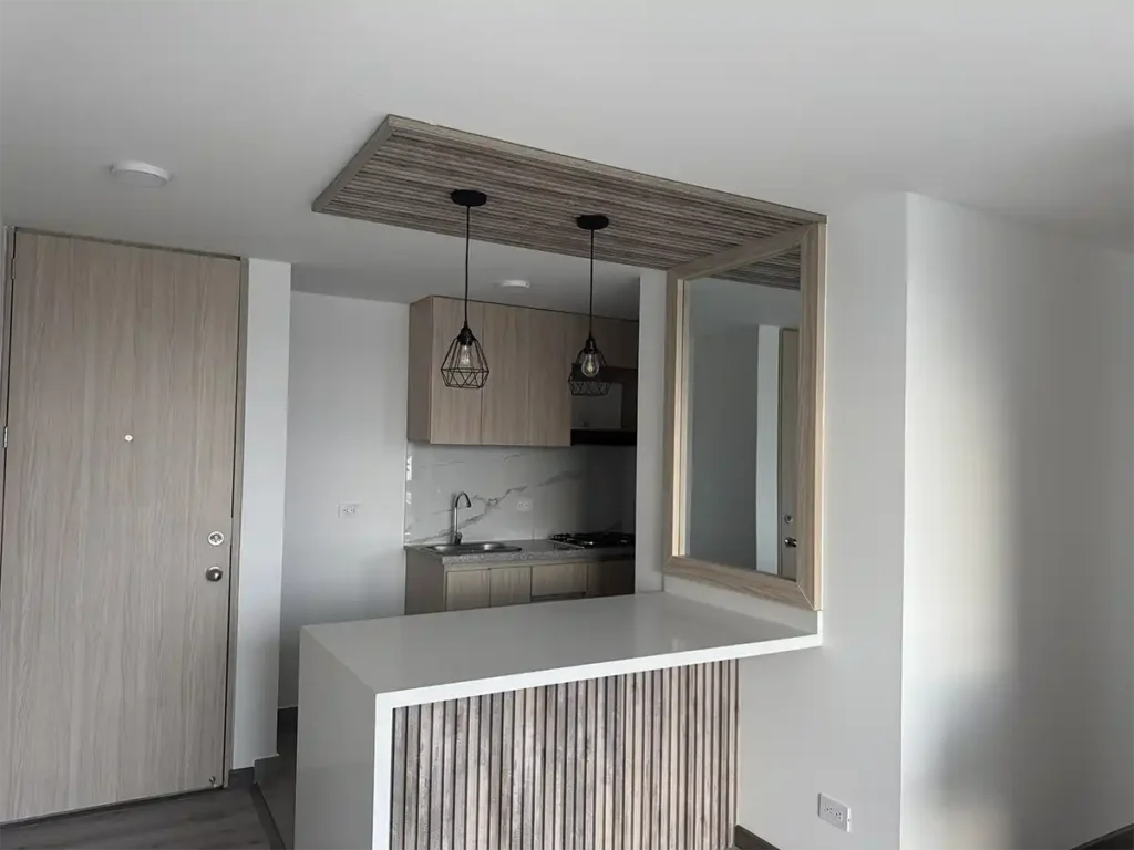 Menú Volver a Clasificados Finca Raíz Datos De Inmueble Descripción: Cocina integral con barra y zona de lavandería con mueble de almacenamiento. sala comedor con mueble de televisión. 2 Habitaciones. 1 Baño con división en vidrio. Parqueadero descubierto. Precio: $1.650.000Con administración incluida Información de Contacto Nataly3233448878